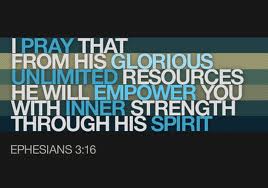 Ephesians 3:16 I pray that out of his glorious riches he may strengthen you with power through his Spirit in your inner being,
