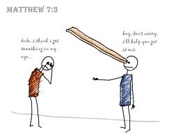 Mathew 7:3-5 Why do you look at the speck of sawdust in your brother’s eye and pay no attention to the plank in your own eye? 4 How can you say to your brother, ‘Let me take the speck out of your eye,’ when all the time there is a plank in your own eye? 5 You hypocrite, first take the plank out of your own eye, and then you will see clearly to remove the speck from your brother’s eye.